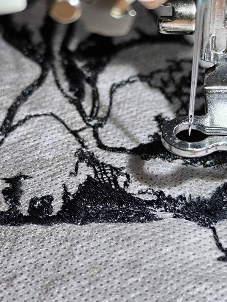 When the details are stitched towards the end of the embroidery process, tension threads will appear that you will need to cut off; please keep this in mind before purchasing.
