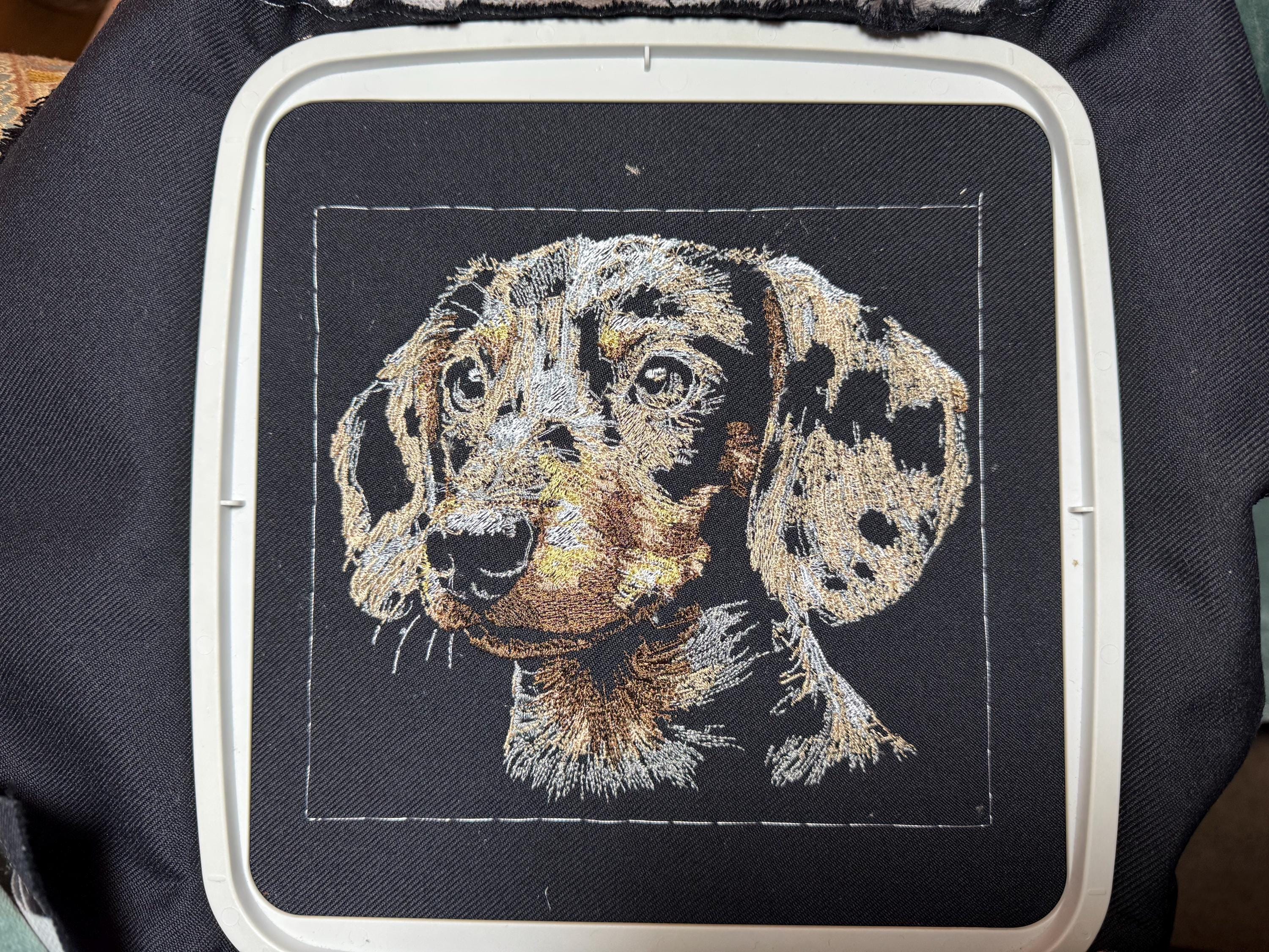 End result my daughter loved it. I was disappointed that the eye section did not stitch out as cleanly as pictured in their ad(the reason I gave it 4 stars. However ,it is still cute and meant a lot to her so I suppose that’s all that matters.
