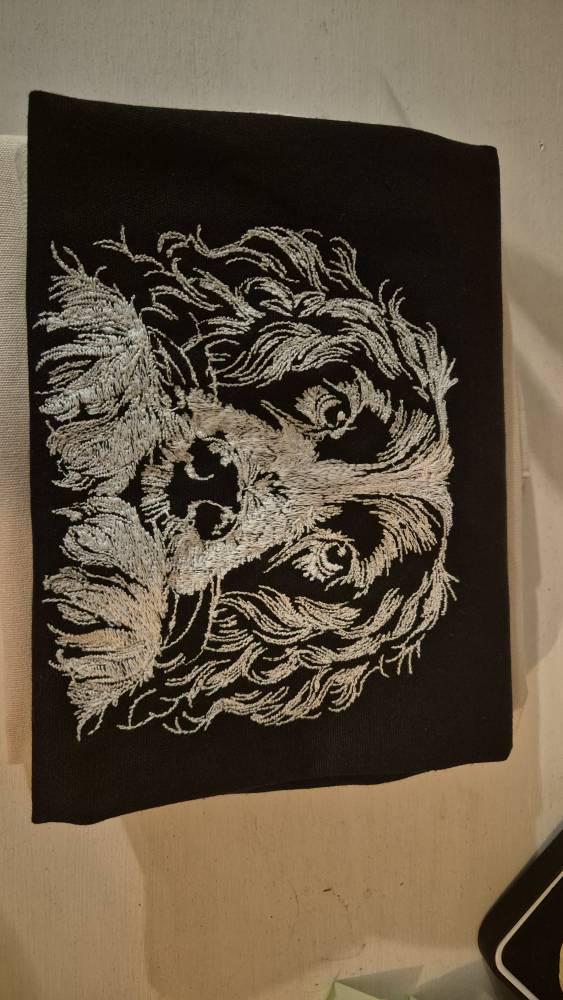 Für realistische Stickdateien sind deutlich mehr Stiche als gewöhnlich nötig, damit sie ein schönes und detailreiches Ergebnis erhalten. Mit einem dickeren Garn und einer dickeren Nadel kann das Ergebnis unscharf und konturlos wirken. Zudem kann der Faden schneller reißen. Die Datei sollte auf einen festen Stoff sowie ein stabiles Stickvlies gestickt werden.