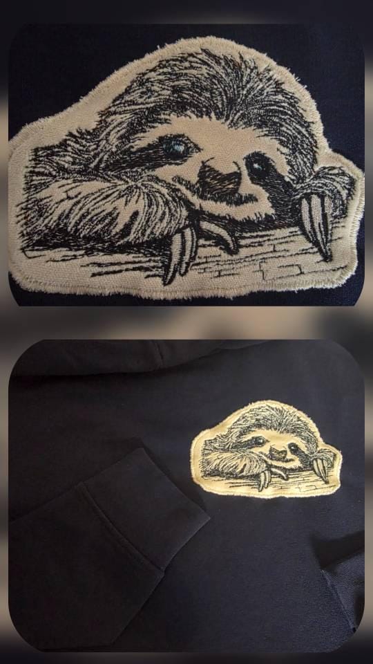 *** This is an appliqué where colored fabric (the sloth's fur) is embroidered. I used imitation animal fur in the video and pictures. Detailed, illustrated instructions are included in German and English. The links will take you to my description video. ***