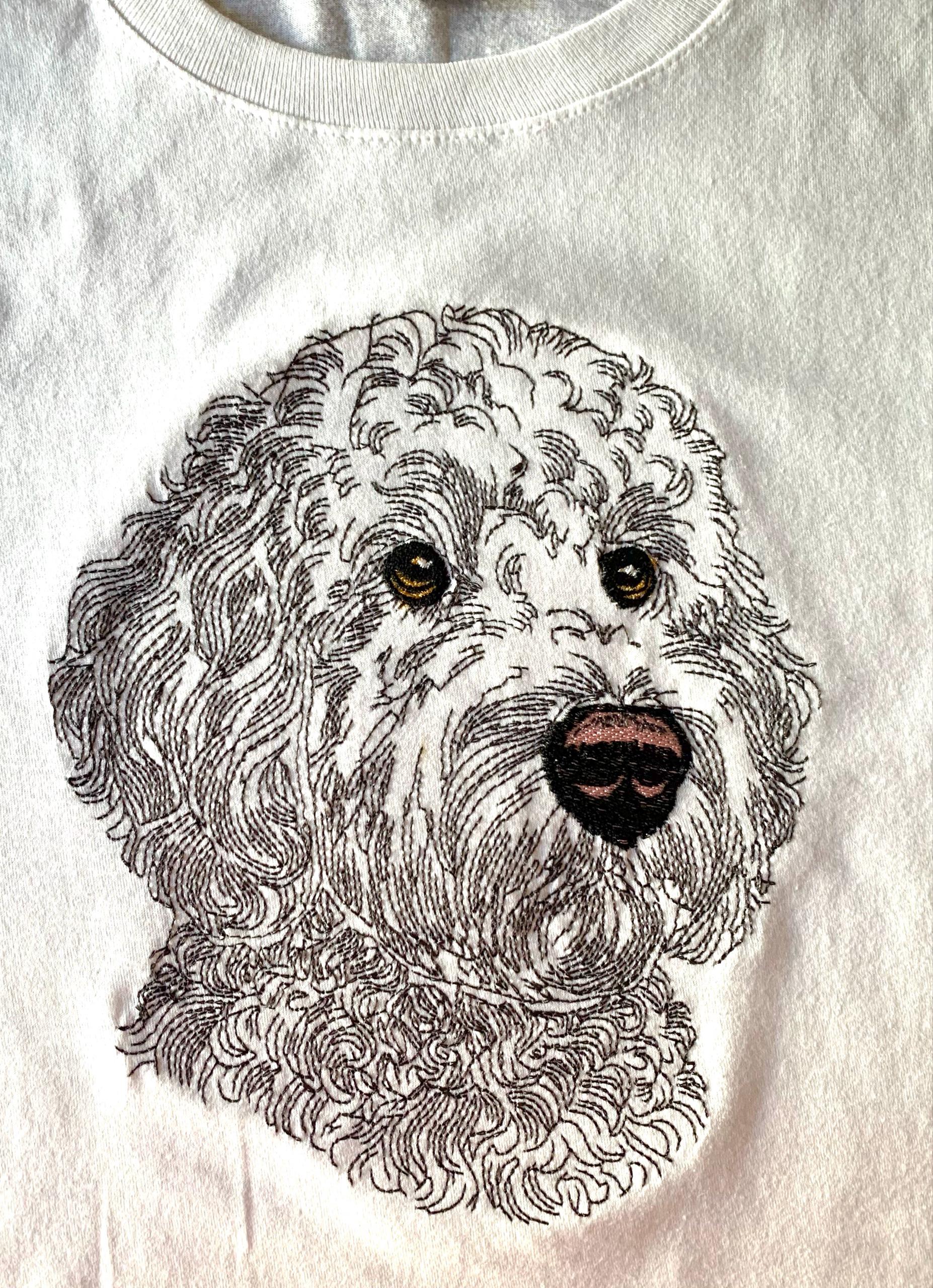 Luna Child’s fewer, light stitch dog designs are great. Stitched out beautifully. My friend will love her t-shirt.